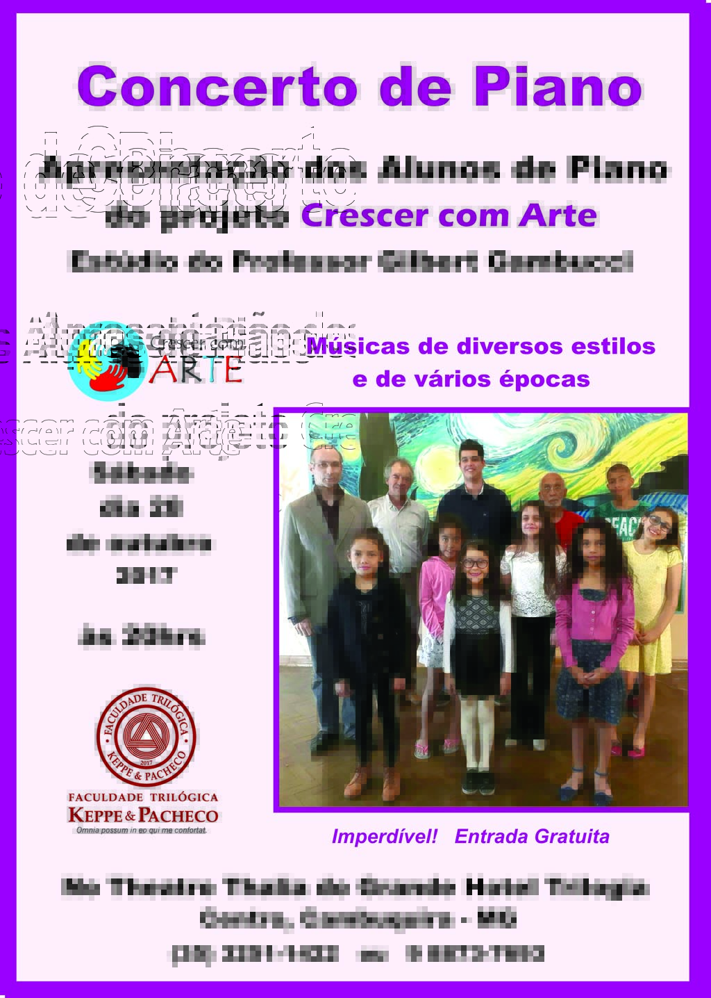 As aulas de piano foram as primeiras atividades do projeto social Crescer com Arte no Campus Cambuquira e são aulas individuais oferecidas para crianças, jovens e adultos em todos os níveis – iniciante, intermediário e avançado.